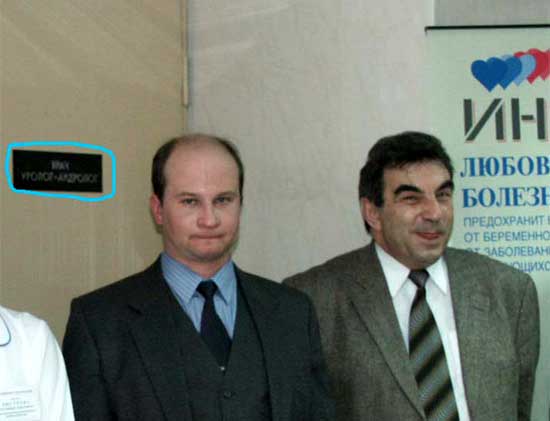 На стене висит табличка - "Врач уролог-андролог". А теперь угадайте, предлагает Денис, кто из представленных на фотографии врачей уролог, а кто андролог...