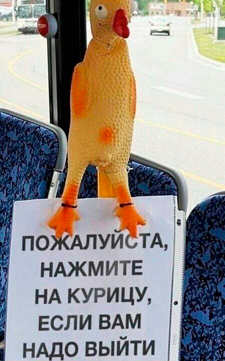 Вообще, находка гениальная, считает Гена Крокодил, для случая, когда звонок сломался. Другое дело, что от внезапного вопля этой курицы у кого-нибудь из пассажиров может сердечко прихватить, но это уже издержки.