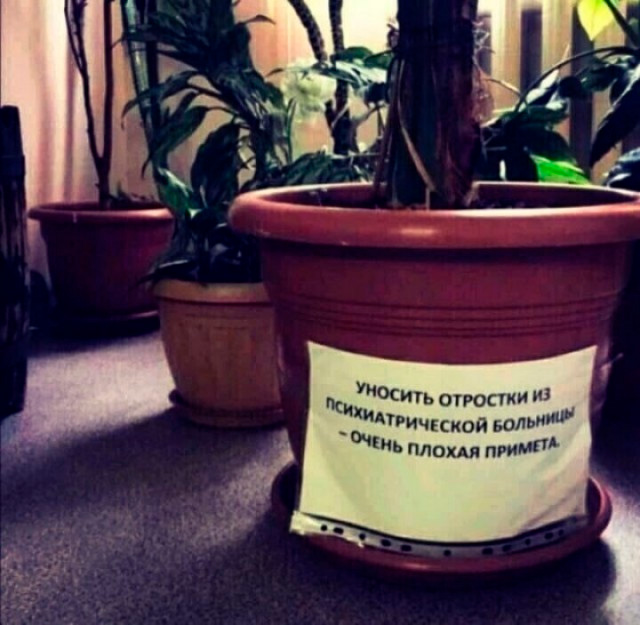 Гм, возможно то растение в психушке родственно тому из фильма "Маленький магазинчик ужасов"? То уж точно домой уносить чревато...