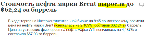 Какая разница, что она куда-то там понижалась, замечает Михаил. Берем конечную цифру и пишем: "Нефть выросла до..."