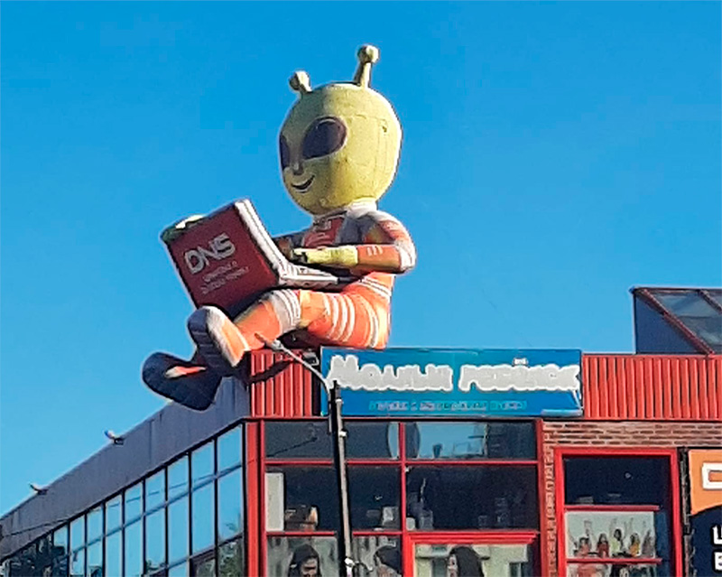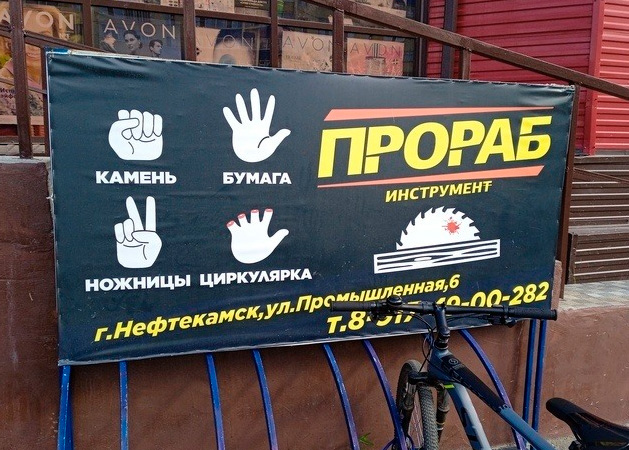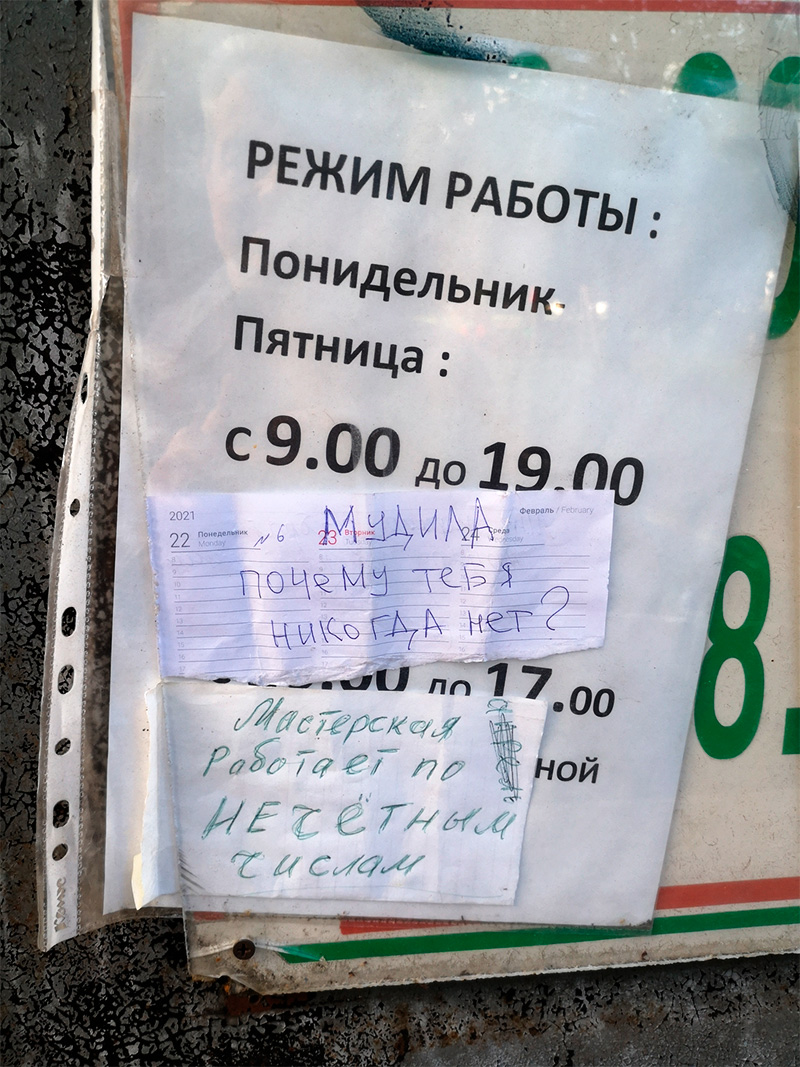 Александр прислал фото увлекательной переписки на вывеске одной московской мастерской.