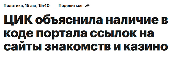 «В коде библиотеки содержатся адреса ряда «сомнительных» интернет-ресурсов. Они применяются для определения факта использования в браузере пользователя инструментов блокировки рекламы. Переход на эти ресурсы, загрузка с них каких-либо данных или передача на них данных пользователя ни в коем случае не осуществляется», — рассказали в пресс-службе ЦИК.