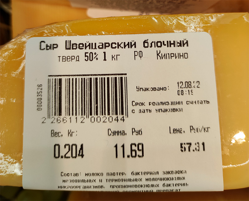 Посмотрел на цену швейцарского сыра. Долго думал и долго считал. Сыр по цене меньше доллара за килограмм? То есть нужно купить ведро молока, затратить ресурсы и время на производство сыра, заплатить магазину за реализацию. И жто всё за один доллар??!!
