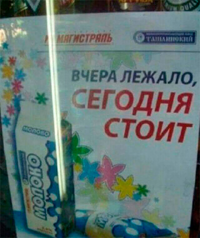 Андрей подумал, что это новое средство для потенции, но оказалось, что там рекламируется всего-навсего новая упаковка для молока.