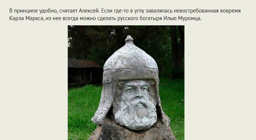 В принципе удобно, считает Алексей. Если где-то в углу завалялась невостребованная вовремя Карла Маркса, из нее всегда можно сделать русского богатыря Илью Муромца.