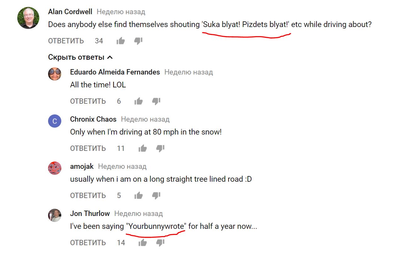 В комментах к записям с российских авторегистраторов