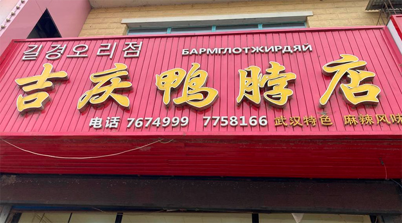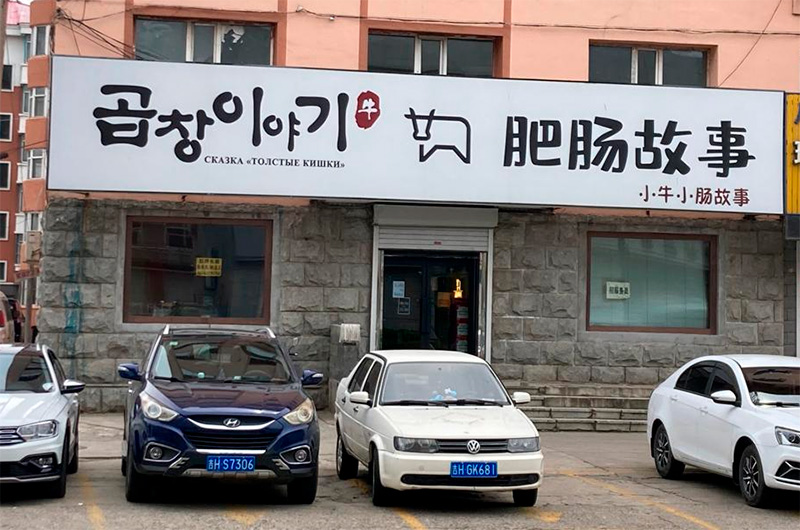 Учитывая ещё и русский, я бы поставил на какой-нибудь китайский порт или приграничный город, куда часто ездят посетители как из Кореи, так и из России.