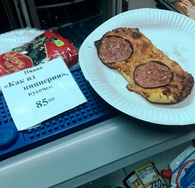 Они, в общем-то, поняли, что пицца у них не получилась, поэтому написали "как из пиццерии", при этом трогательно умолчав, что в пиццерии данный кошмарный кусок пролежал минимум два месяца.