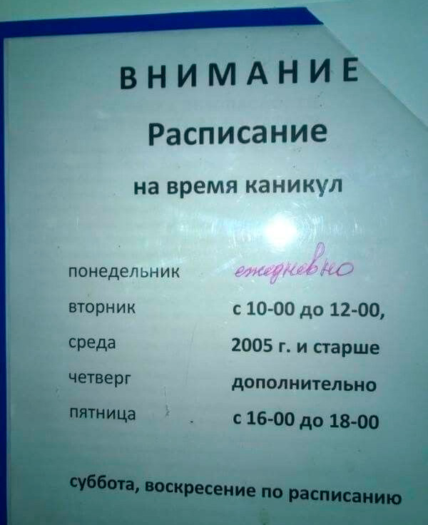 Ирина прислала расписание, в котором прекрасно все. И ежедневный понедельник, и суббота с воскресеньем, которые по расписанию, и четверг, который дополнительно и очень волнительно.