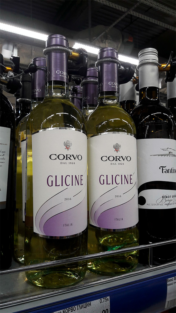 Почему глицин? "Глициния" же, без опечаток, и даже цвет бутылки точен. Глицин на всех основных языках по-другому пишется.