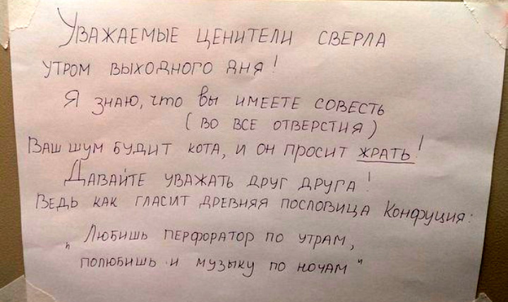 кстати, только что понял, что 20 лет прожив в квартирах, но не в России, ни разy не слышал сверлеж от соседей. НИ ОТ ОДНИХ! НИ РАЗУ! Ну, мое собссное сверло не считается, есс-сно.