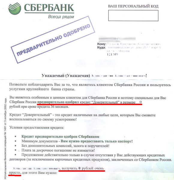 Константин - старый клиент "Сбербанка". И он горд и счастлив, что именно ему "Сбербанк" предложил взять такой выгодный кредит - 0 рублей под совсем небольшой процент!