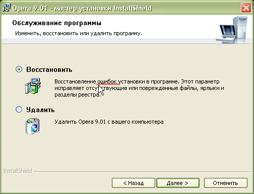 До чего дошла техника, удивляется Андрей. "Опера 9.01" умеет восстанавливать все ошибки установки - вот это класс!