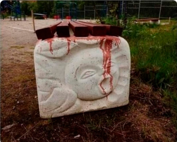 Скамеечка с окровавленным лицом впечатляет. Так можно нечаянно и демона какого-нибудь призвать. А в тексте контактера Пети скрыта пасхалочка для старших, которую мОлодежь и не заметит. Иди на "Астру" 😄