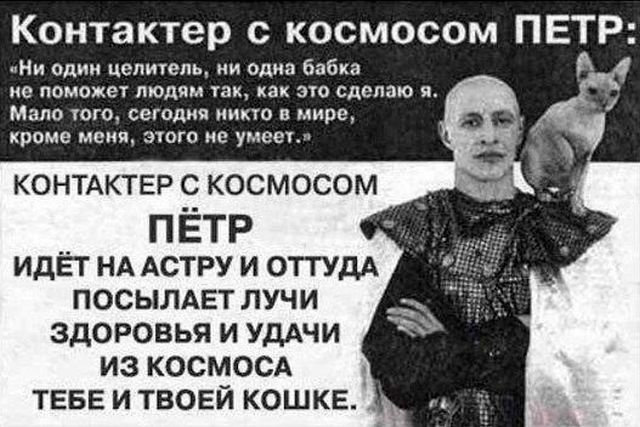 Контактер Петр - это из газеты Бульвар Гордона начала нулевых. Гордон тогда держал под собой экстрасенсов и контактера Петра он иногда заменял.