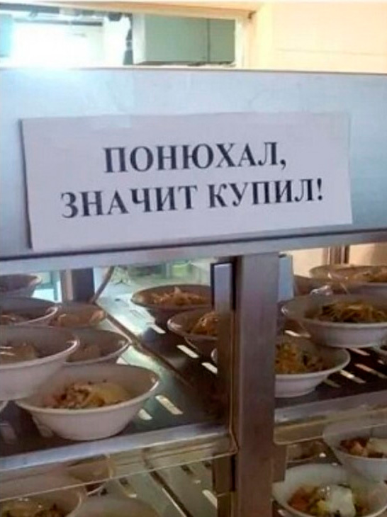 Про "понюхал - купил" люди берут блюда так, что потом кому-то отдавать н пристало. То есть такая табличка - максимально уместна для этого контингента видимо.