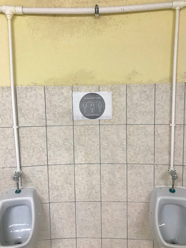 Андрей прислал объявление в туалете: если к писсуару подойдет женщина, соблюдай с ней дистанцию не менее 1,5 метра, береги здоровье женщины!