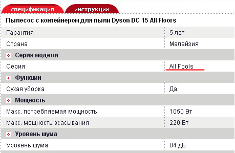 Александр на "М-Видео" обнаружил прелестный малайзийский пылесос. Особенно серия у него классная - "Все придурки". Видимо, имеются в виду те, кто сдуру купят этот агрегат.