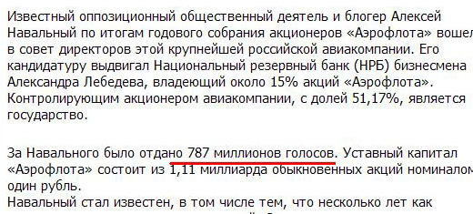 Вообще, там должно было быть "787 миллионов голосующих акций", но новостист сократил по своему разумению. Несмотря на то что с разумением у него - огромные проблемы.