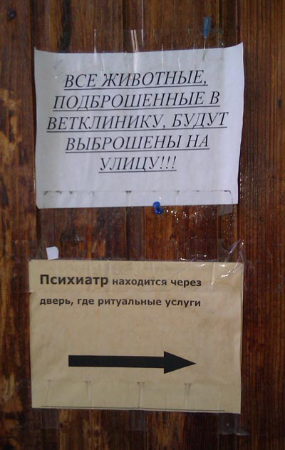 Ирина прислала забавное вроде объявление, но это уже переработка старого. В оригинале было "идиотам и москвичам".