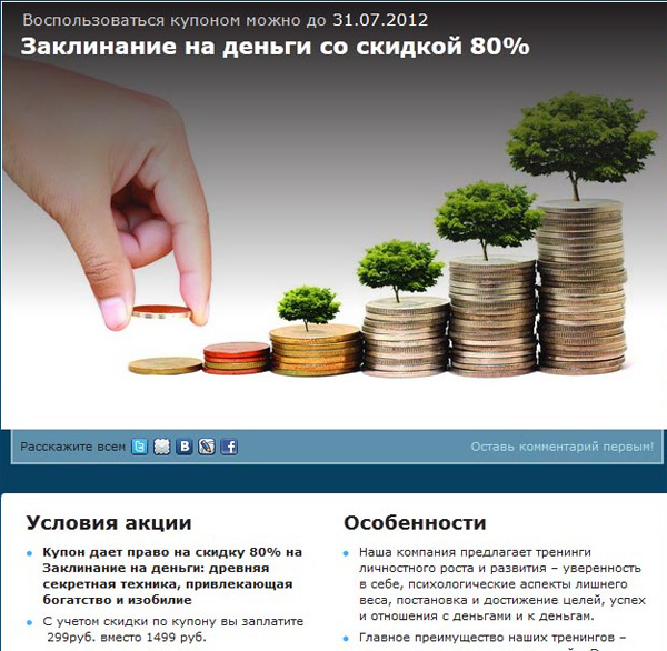 Алексей любит всякие купоны на скидку. Недавно ему достался совсем потрясающий купон - право на скидку на заклинание на деньги!