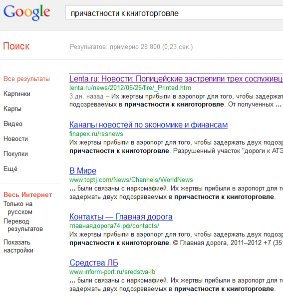 Кстати, если погуглить, то можно получить всего-то под 30 тысяч ссылок на причастность к книготорговле. И это доказывает, что новостисты при републикации новостей голову включают крайне редко. Впрочем, на той же "Ленте" исправили очень быстро.