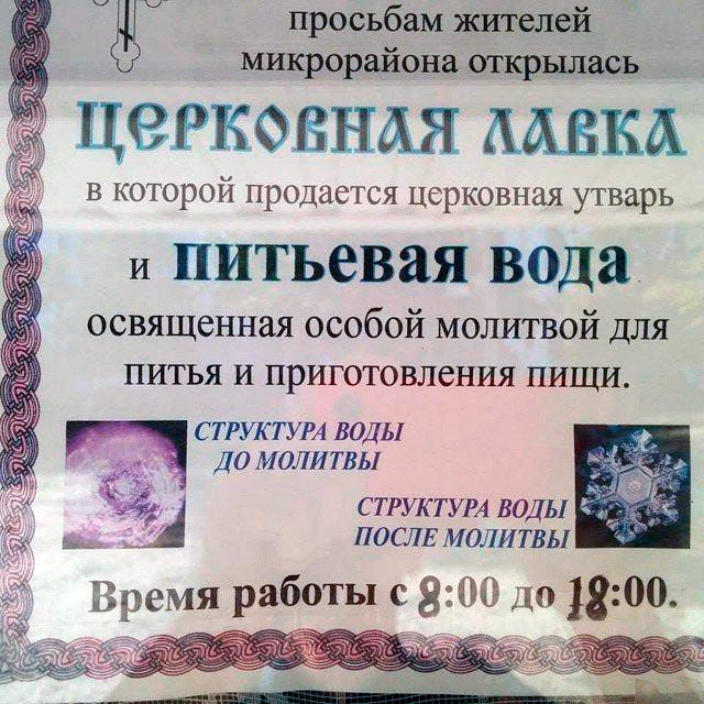 Купите водичку, советует Кирилл, купите. Учитывая тот факт, что это обычная водопроводная вода, то вполне возможно, что поможет от запоров. Видите какая структура после молитвы структурированная?