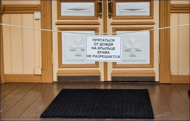 Запрет прятаться от дождя на крыльце храма — какая мерзость! Вот так привечают страждущих.