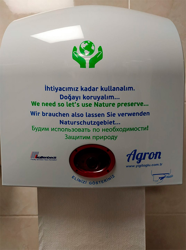 В фото с раздатчиком полотенец бумажных прекрасно всё. Особенно то, что они будят "использовать по необходимости". Кто такой "Использовать по необходимости", хрен его знает, но, видимо, крутой чувак, раз они так гордятся тем, что его будят.