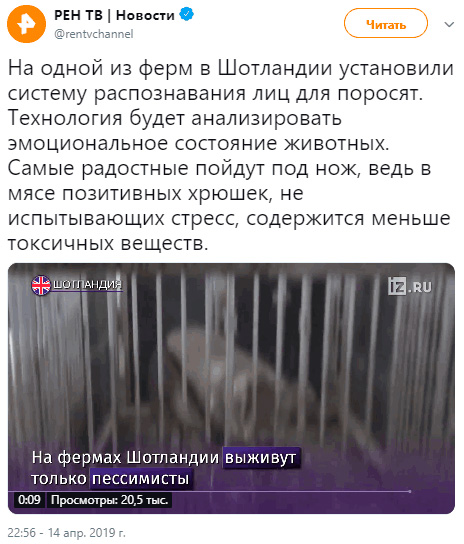 То есть, если максимально упростить, система будет определять, какие из хрюшек плохо себя чувствуют - и позволять фермерам вычленять больных без индивидуального осмотра ветеринаром каждой. Так что, технически, на скотобойню будут действительно отправлять "веселых", тогда как "находчивые" отправятся в отброс.