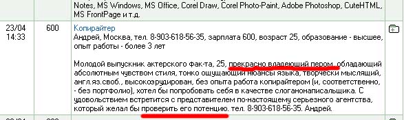 Ольга Бруковская искала для своего проекта копирайтера. Ну, знаете, это такой человек, который делает рекламу, копирайтит, линкует, слоганирует, а заодно еще и бегает за сигаретами. Но Ольга не знала, что в обязанность копирайтера входит еще и... Впрочем, смотрите сами: