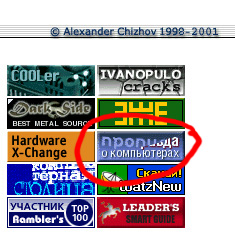 Шо, говорите, о компьютерах? Фу, как неприлично. Между тем, это всего-навсего последствия отключения анимации. Потому что кнопочка ведет на журнал "Прописи" (Про PC). Впрочем, название этого журнала давно не дает некоторым интернетошатающимся покоя. На канале #fidorus даже бытовала расхожая хохма: "DZ открыл порнографический журнал "Про писи".