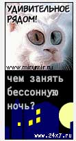 Каждый кот желает знать, чем занять бессонную ночь. Формула, на самом деле, довольно проста: или музицировать, или переживать романтические моменты. Попросту говоря - или орать во все горло на крыше, или трахать кошечек. Что тут, спрашиваете, удивительного? А вы никогда на крыше не пробовали? Нет? Видать, у вас еще не было бессонной ночи. Между тем, на крыше столько всего удивительного! Во-первых, звезды! Во-вторых, лунатики! В-третьих, можно случайно поскользнуться и навернуться с крыши. Хорошо еще, если партнерша с тобой не упадет! Потому что в этом случае она может перестать с тобой разговаривать. Особенно если упасть этажа эдак с двенадцатого. Так что на крыше удивительного - как грязи!