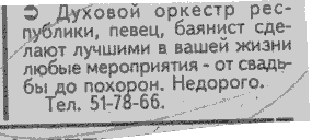 Айдын Уразбаев поделился с нами довольно интересными объявлениями, увиденными им в одной из газет: