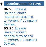 В 5:20 здание парламента было взято штурмом, и президент бежал. В 5:25 президент остановился и закричал: "Стой, стой! Люльку потерял! Не позволю, чтобы люлька досталась проклятым ляхам!" В 5:40 президент вбежал в здание парламента, надавал люлей штурмовавшим, выгнал их всех пинками, нашел люльку и с наслаждением закурил. В 6:00 президент выпил рюмочку бренди. В 6:15 нападавшие поинтересовались у президента, долго ли он намерен тянуть кота за усы. Тот ответил, что сейчас допьет рюмку и свалит. В 6:20 здание македонского македонского парламента было взято осторожным штурмом. Президент ушел бегом, весьма похожим на шаг.