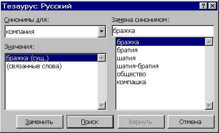 AL считает, что "Ворд" все глубже и глубже проникает в суть вещей. Вот посмотрите, какой синоним он выдал для слова "компания":