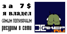 Оказывается, хакеры вовсе не так уж и круты! Во-первых, ими завладели всего за 7 долларов. Но это еще не все! Важно КАК ими овладели! Ведь за 7 долларов от хакеров получили не знания, не умение вскрыть пароль или заломать электронный ключ! От них получили всего-навсего... впрочем, вы сами все видите на баннере. Тьфу, какой ужас! Впрочем, баннер так и не дал ответа на вопрос, кто именно властно овладел хакером. Зато понятно, почему хакер.ру теперь вдруг стал самым популярным! "Избушка, избушка, повернись к лесу передом, а ко мне задом..." Ужас! Я всю жизнь считал, что это хакеры всех имеют - ан нет! Совсем наоборот! Сложная эта штука - жизнь!