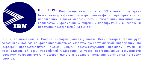 Так что если вы - финансово закрепленная фирма, и у вас есть о фирмах, и предприятий, и их задачи, - немедленно отправляйтесь по всему спектру в IBN, которая уж на сто процентов - единственная в Россий! Чес-слово - на весь Россий у нас такая есть - только одна! Я другой такой не знаю, которая предоставляет любые услуги соответствующим правилам этики, а несоответствующие правилам этики гонит влажными тряпками, причем опять же - по всему спектру!