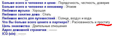Дмитрий Zhuk-OFF обнаружил весьма забавную анкету, заполненную некоей девушкой на сайте знакомств: