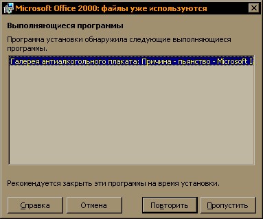 Майкрософт все никак сам с собой не разберется. Office 2000 не может себя установить, потому что компьютер - пьян в зюзю. А причина - пьянство Microsoft Internet Explorer, то есть разброд и шатания в рядах того же Майкрософта. Надо им в качестве отрезвляющего туда Линукс поставить. Сразу протрезвеют, как миленькие.