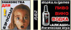 Наконец-то Интернет в лице своих баннизмов нашел в себе силы честно сказать, чем же на самом деле увлекаются взрослые! "Симпатичная округлая бутылка водки познакомится с алкашом средних лет. Бывших в ЛТП просьба не беспокоиться", "Бомба с вермутом ищет тихую компанию для приятного времяпрепровождения", "Литруха пива попанкует на молодежной вечеринке", "Изящная бутылочка французского вина ищет, ик, этого... как его... ситуайена, вот!".