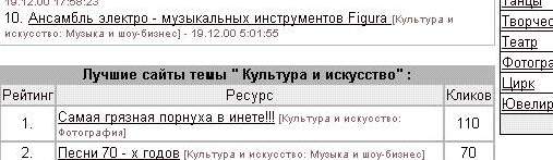 Очень симпатичный сайтик стоит на первом месте в разделе "Культура и искусство", не так ли?
