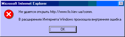 В расширения Интернета произошла внутренняя ошибка. Эдакая внутренняя интернет-непроходимость произошла у Windows. А ведь сколько раз врачи повторяли виндоусу: не следует злоупотреблять неприличными сайтами! От них не только внутренняя непроходимость может произойти, но и внешняя падучесть. Хотя по логике вещей должна быть не падучесть, а совсем наоборот - поднимаемость.