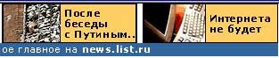 Интересно, почему президент так ополчился на Интернет? Вроде, он вполне нормально ответил на вопросы в онлайне, причем от него, понятное дело, отсекли все обычные в таких случаях выступления "Здарова, Ваван!" и "Эта чо тут - призедент чо ли?", так что чем провинился Интернет - не очень понятно. Впрочем, раз после беседы с Путиным Интернета не будет, остается очень простой выход: не беседовать с Путиным. И все дела. И тогда Интернету будет. На орехи.