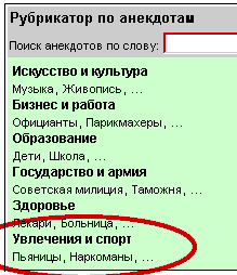 А что? По-моему, очень милые увлечения. И даже очень современные. Кроме того, наркомания - это же чистый спорт! Попробуйте за 10 секунд, пока милиция стучит в дверь, грозя ее выломать, спустить в сортир десять кило кокаина!