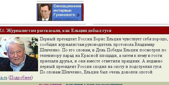 Кстати, благодаря сообщению Констатина Дудинского нам стало понятно, что Ельцин точно подстрелил совсем не того гуся: