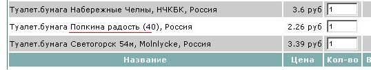 Денис подчеркнул название "Попкина радость". Врать не буду, название удачное. Но туалетная бумага "Набережные Челны" мне понравилась больше.