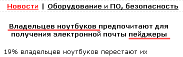 А мы-то думали, что пейджеры - они дураки: висят себе тихонько на поясе и временами попискивают. А оказалось - эти негодяи используют владельцев ноутбуков, чтобы получать электронную почту от других пейджеров. Видали, какие дела? Нас кольцуют, ребята! Срочно избавляемся от ноутбуков! Нет, лучше от пейджеров! Кто же знал, что они такие негодяи!