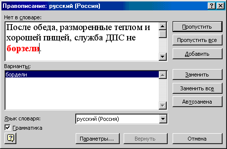 Очередные послания от лучшего орфоконтролера всех времен и народов - Word'а... Сначала,  с помощью Татьяны, Word выдает нам некоторые секреты сотрудников ДПС: