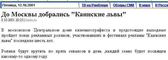 Впрочем, у Натальи есть еще одна интересная новость. О Каннских львах. С этими животными, как выяснилось, далеко не все в порядке: